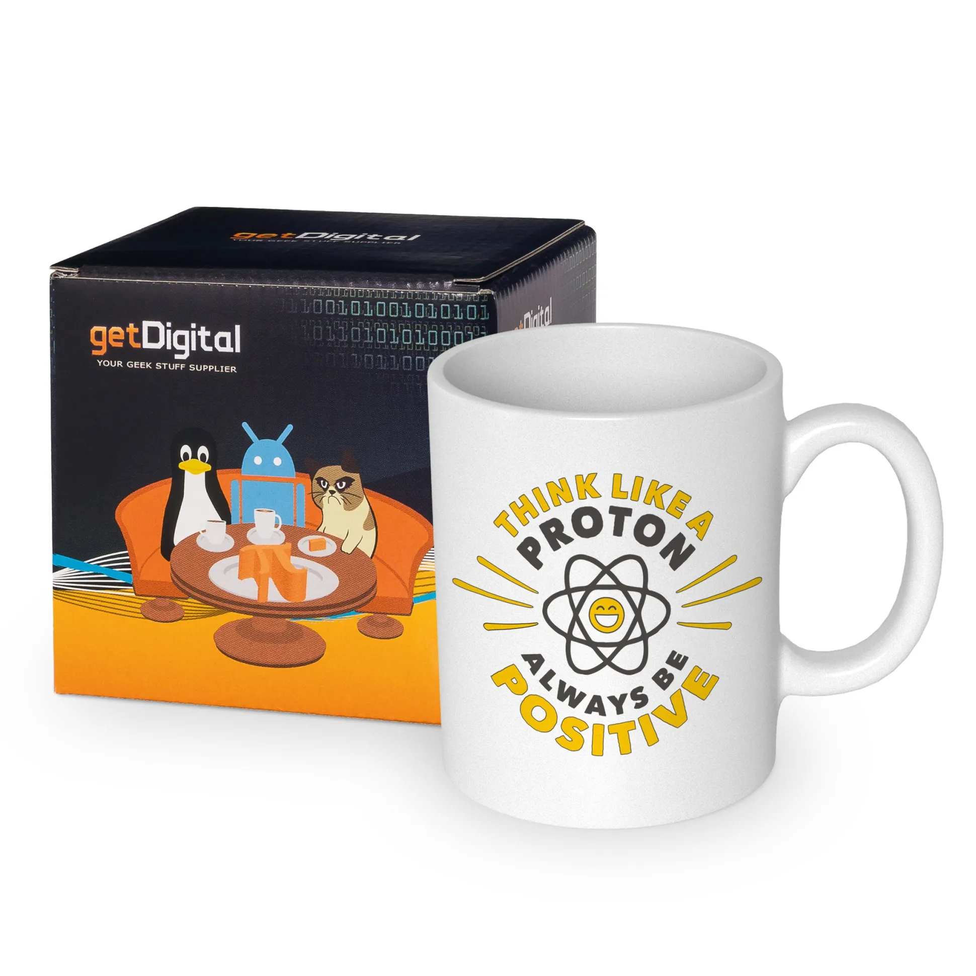 In der Physik gibt es viele bedeutende Wissenschaftler*innen, an denen man sich ein Beispiel nehmen sollte. Doch oft unbeachtet bleiben die Kleinsten der Kleinen in der Welt der Formeln, Gesetze und physikalischen Phänomene, die mit ihrer unermüdlichen positiven Lad- äh, Einstellung beeindrucken: Die Protonen! Nimm dir ein Beispiel an ihnen mit dem Think Like a Proton Becher, der dich jeden Tag daran erinnert, schön positiv zu bleiben – eben (zu deutsch): wie ein Proton zu denken!
