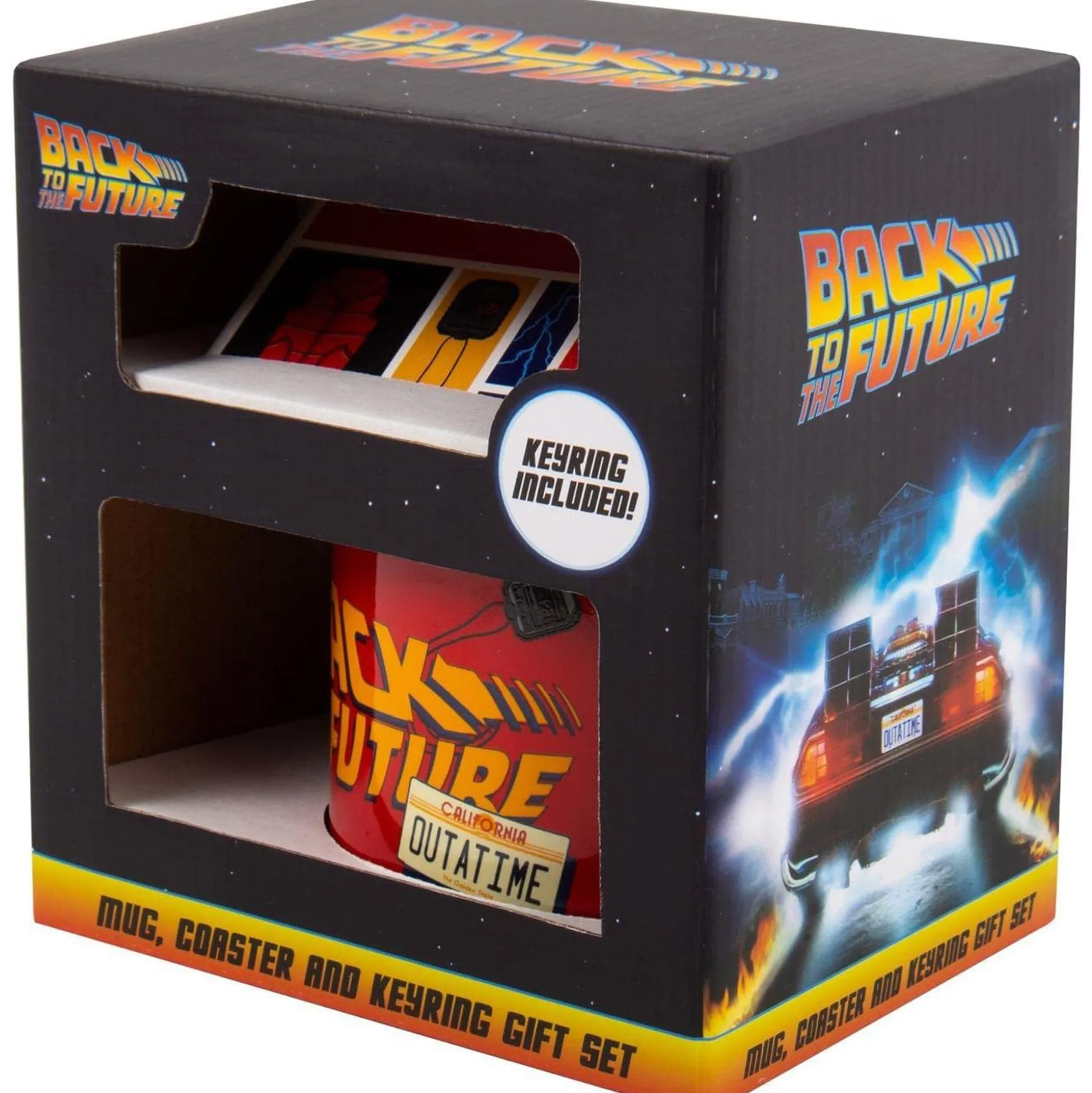 Zeit für Kult-Nostalgie! Dieses offiziell lizenzierte Back to the Future-Set bringt Fanherzen zum Rasen – ganz ohne 88 Meilen pro Stunde. Die detailverliebte Keramiktasse (ca. 430?ml) mit dem ikonischen „OUTATIME“-Design, ein passender Untersetzer mit Korkrückseite und ein robuster Metallschlüsselanhänger machen dieses Set zum idealen Geschenk für alle, die Marty, Doc & den DeLorean lieben. Perfekt für Filmfans, Sammler oder als stylisches Highlight für Küche, Büro oder Wohnzimmer.